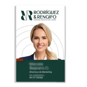 Todos los carnets se personalizan con la foto, nombre, cargo, logo corporativo y pueden incluir código QR, código de barras, banda magnética o hologramas de seguridad, garantizando identificación segura y profesional. Nuestro equipo de diseño gráfico te acompaña en todo el proceso: desde la creación del arte hasta la impresión full color y la entrega en cualquier ciudad del país