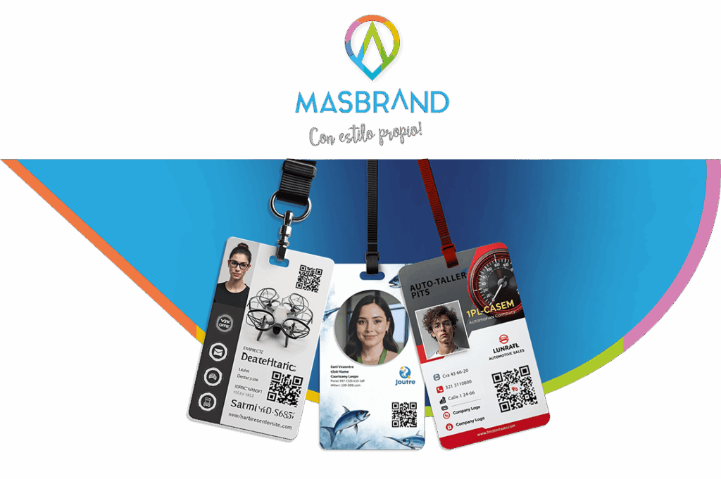 “En Masbrand diseñamos e imprimimos carnets personalizados en PVC calibre 30 con acabados brillantes o mates, en formato estándar de 54 × 86 mm (horizontal o vertical), ideales para empresas, colegios y eventos en Colombia. También producimos formatos especiales (90 × 125 mm) para ferias. Ofrecemos opciones con código QR, banda magnética, chip NFC y laminado protector, que garantizan durabilidad, funcionalidad y seguridad. Nuestro equipo de diseño te ayuda a crear un carnet que refleje la identidad de tu marca.”